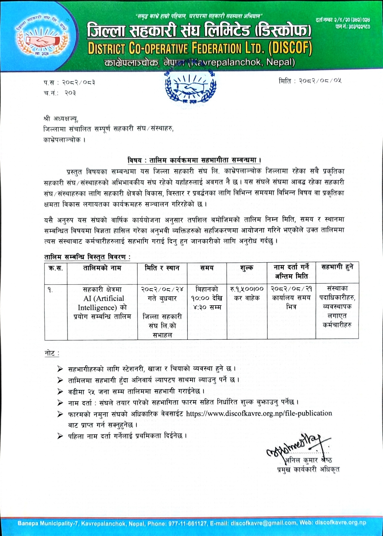 तालिम कार्यक्रममा सहभागिता सम्बन्धमा । 2025-11-23 देखि 2025-12-10