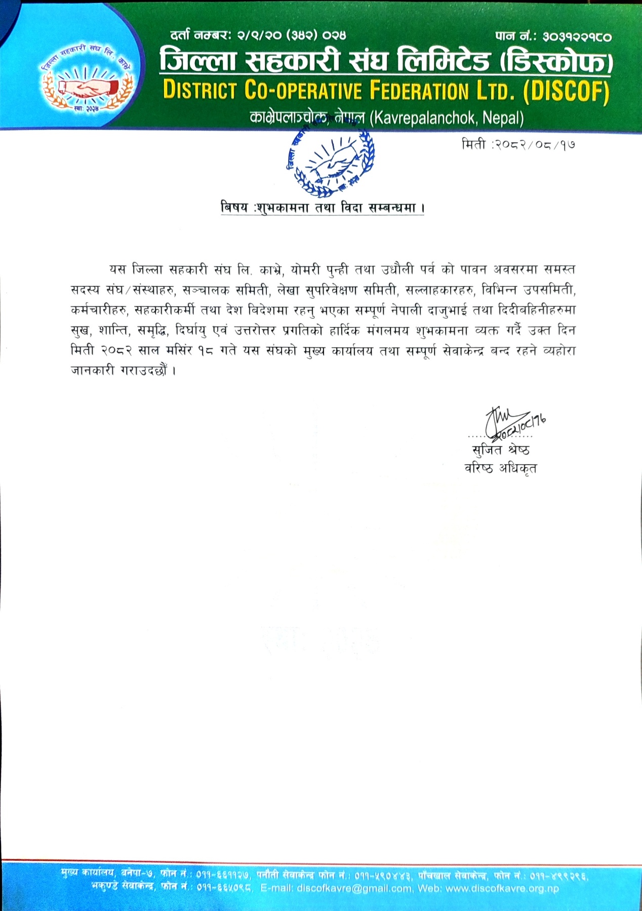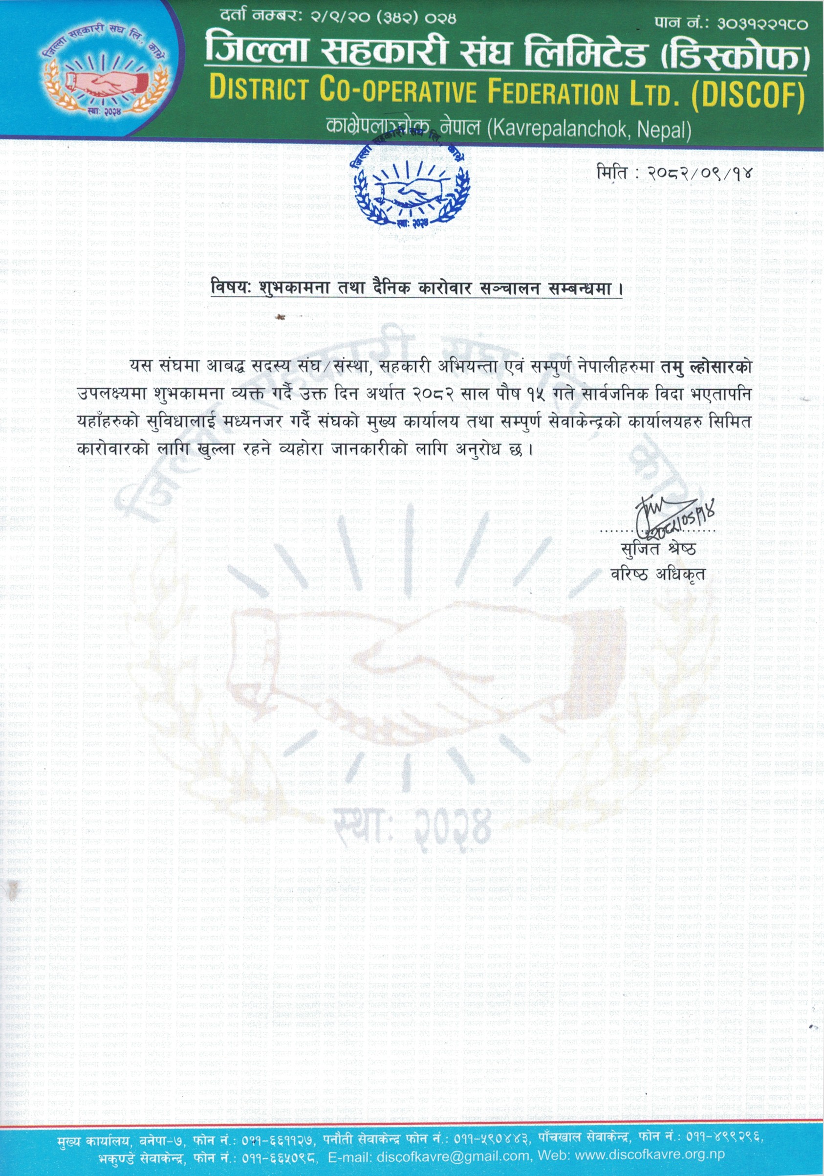 शुभकामना तथा कार्यालय सञ्चालन सम्बन्धमा । 2025-12-29 देखि 2025-12-31