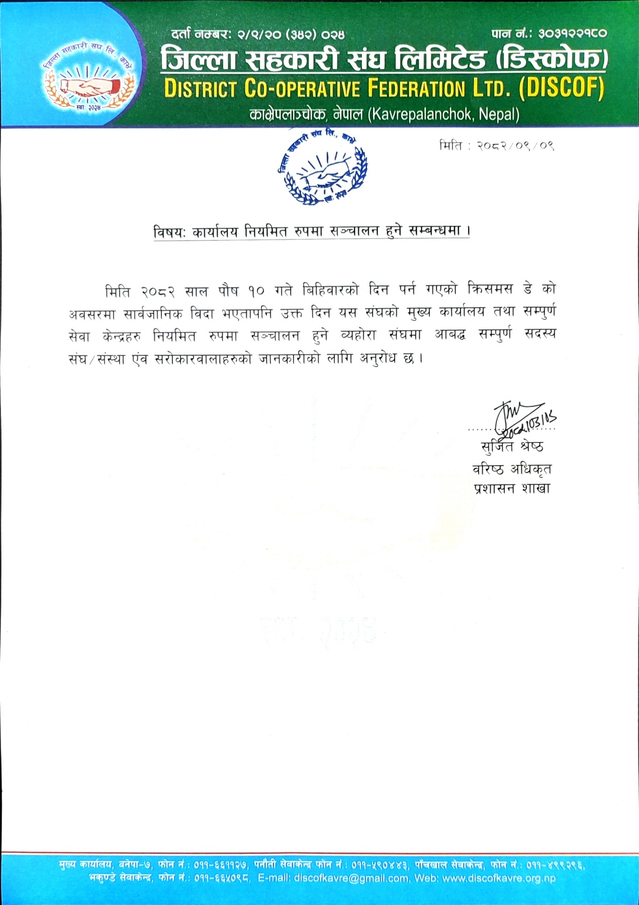 कार्यालय सञ्चालन सम्बन्धमा । 2025-12-24 देखि 2025-12-26