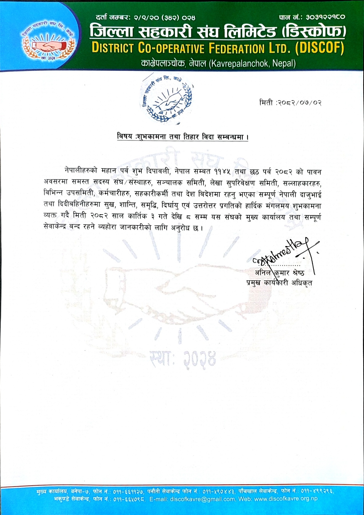 शुभकामना तथा दैनिक कारोबार सञ्चालन सम्बन्धमा । 2025-10-26 देखि 2025-10-31