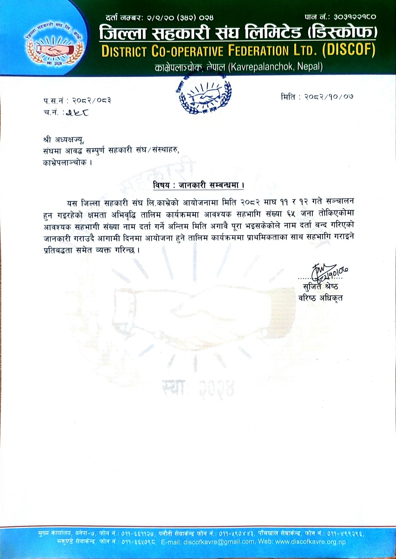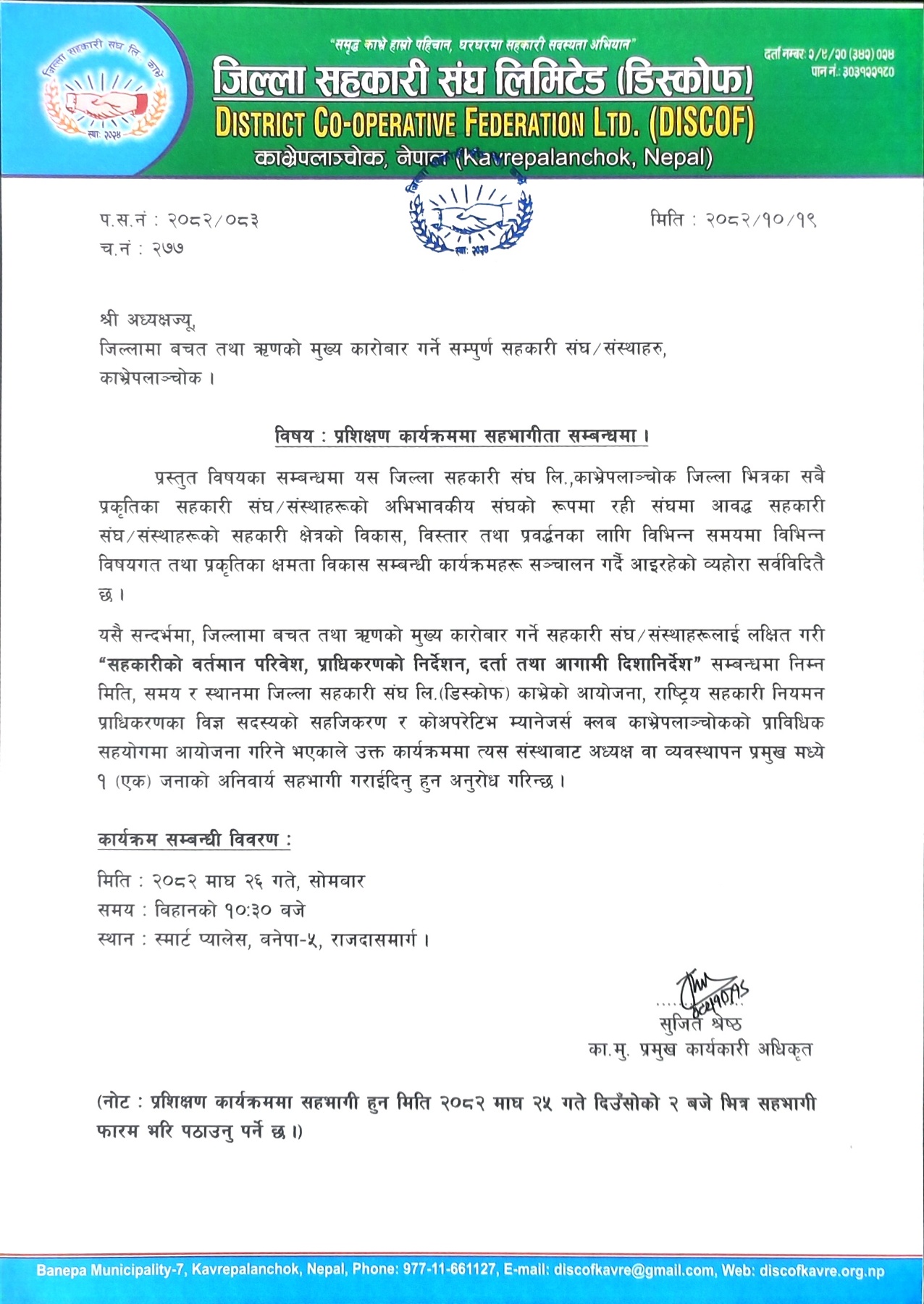 प्रशिक्षण कार्यक्रममा सहभागीता सम्बन्धमा । 2026-02-02 देखि 2026-02-14
