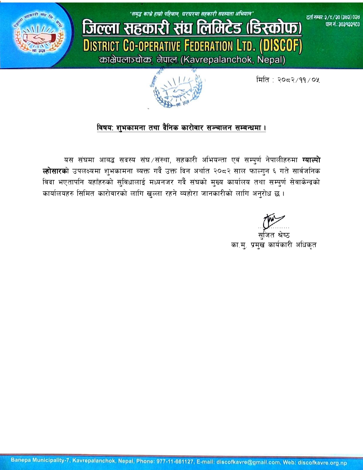 शुभकामना तथा कार्यालय सञ्चालन । 2026-02-17 देखि 2026-02-23